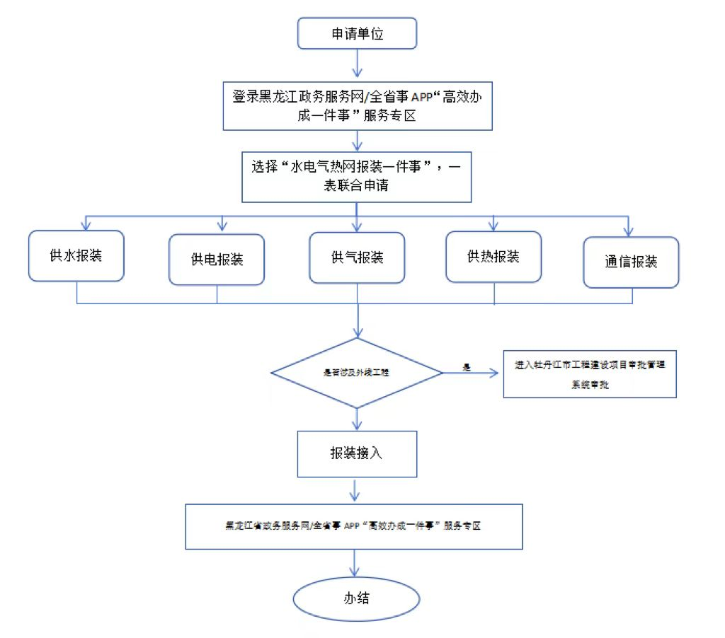 2、登錄“牡丹江市工程建設(shè)項目審批管理平臺”--選擇“水電熱氣訊聯(lián)合報裝服務(wù)流程”